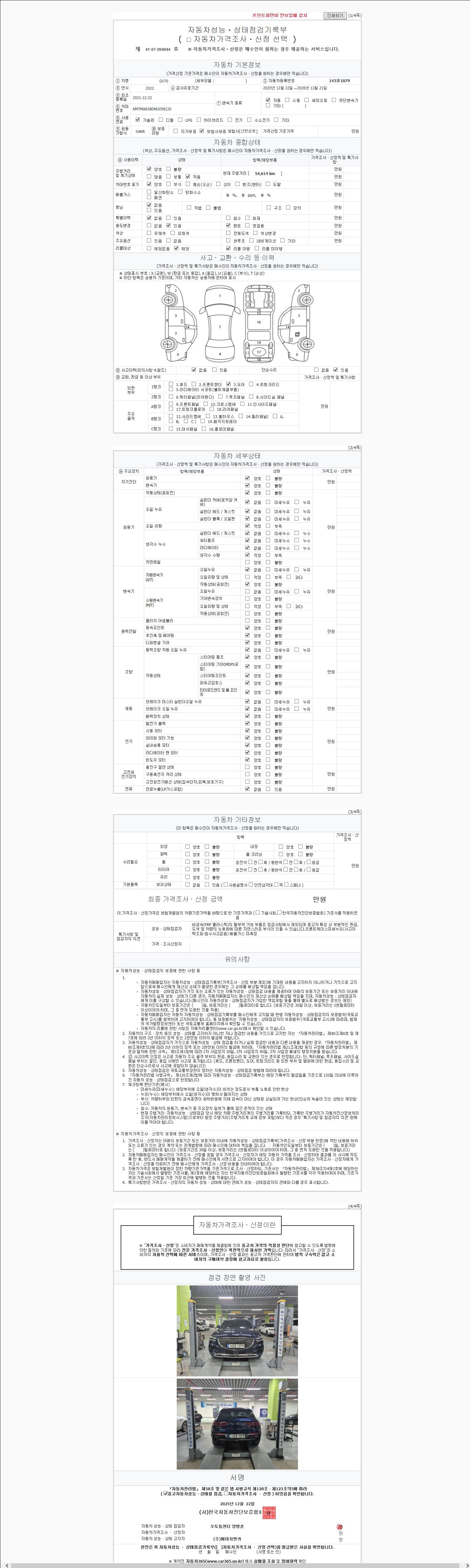 | 주행거리 | 54,614 km | 차량번호 | 143호1079 | 사고유무 | 성능기록부 참조 | 제시번호 | 제 2147483647 호 |
