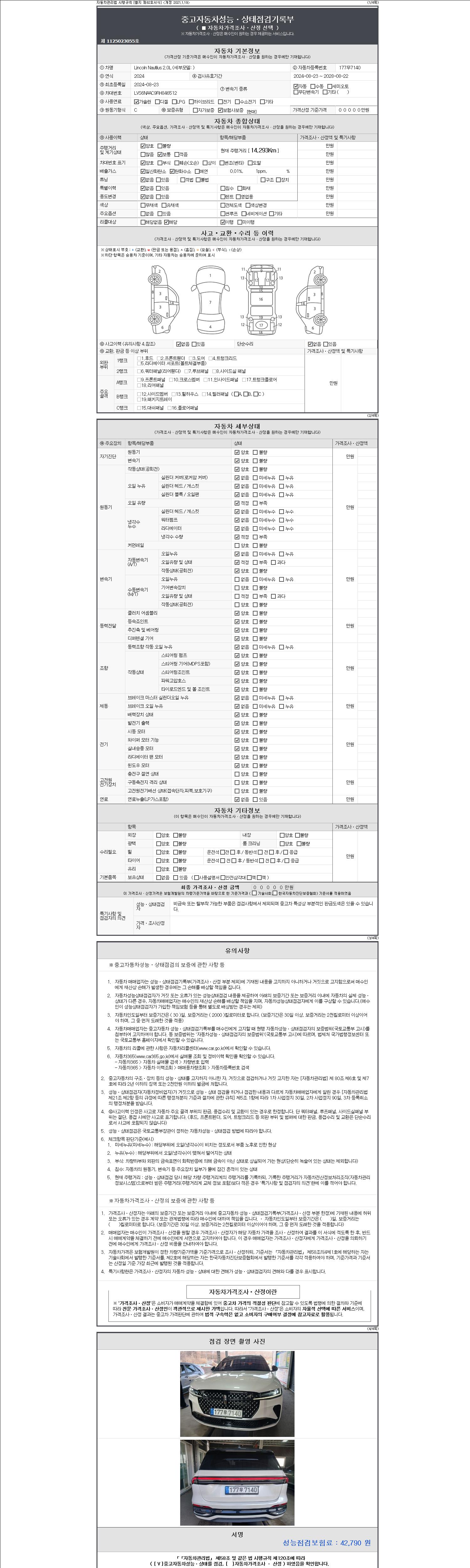 | 주행거리 | 14,293 km | 차량번호 | 177무7140 | 사고유무 | 성능기록부 참조 | 제시번호 | 제 2147483647 호 |