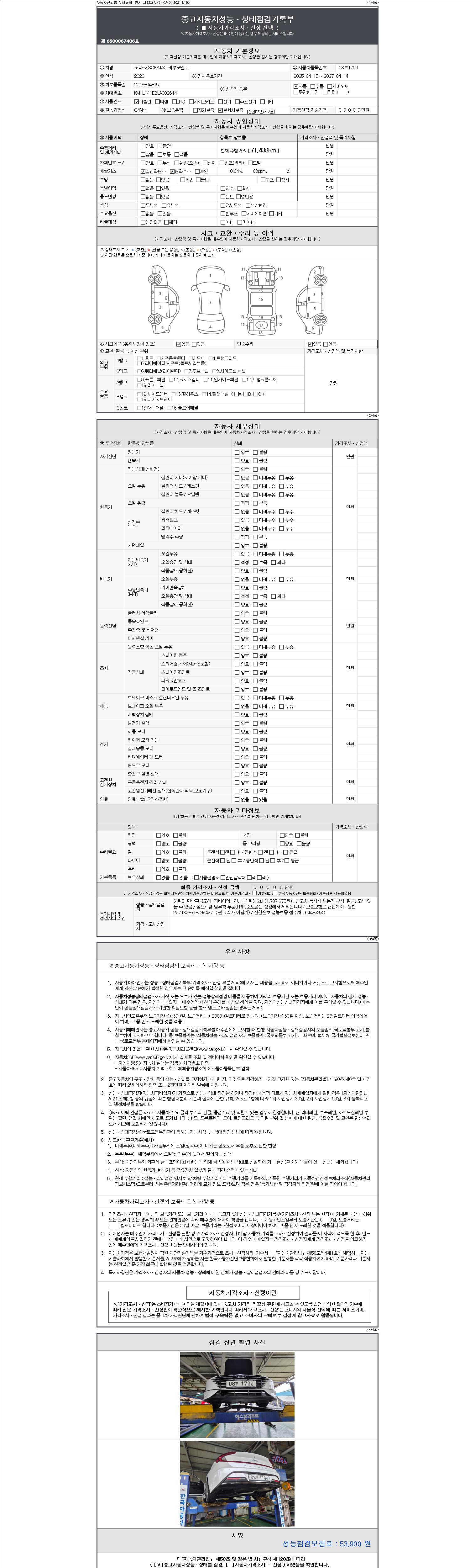 - 2. 차량 등록증이나 성능점검지 등을 상담자에게 요청및 확인하시고 사전에 미리 점검 하시기를 권유드립니다.