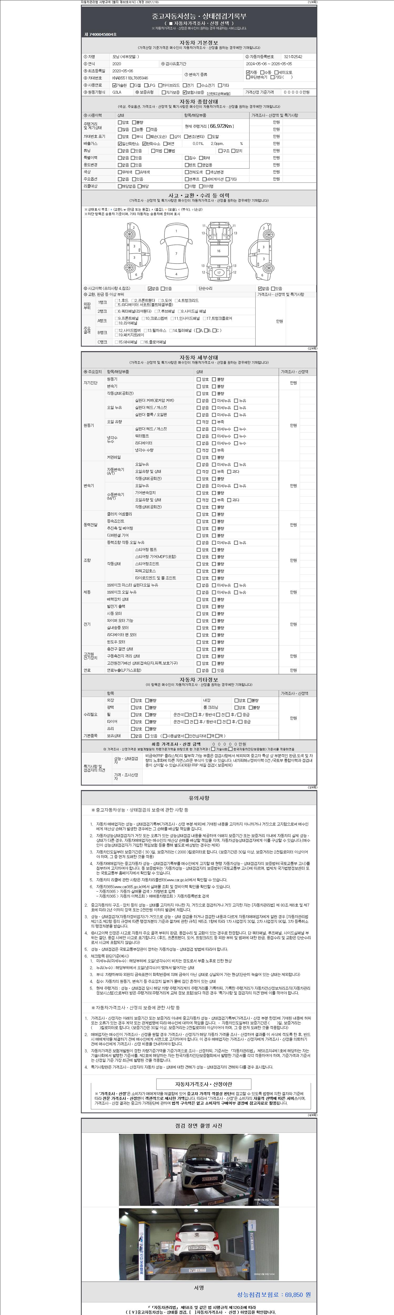 - 2. 차량 등록증이나 성능점검지 등을 상담자에게 요청및 확인하시고 사전에 미리 점검 하시기를 권유드립니다.