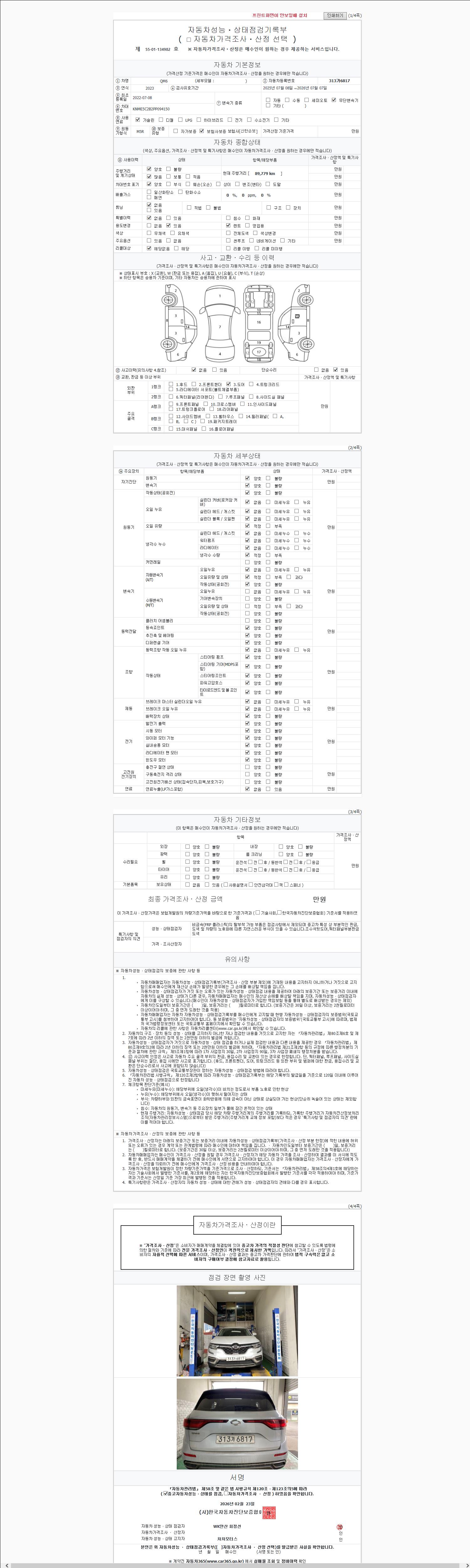 - 2. 차량 등록증이나 성능점검지 등을 상담자에게 요청및 확인하시고 사전에 미리 점검 하시기를 권유드립니다.