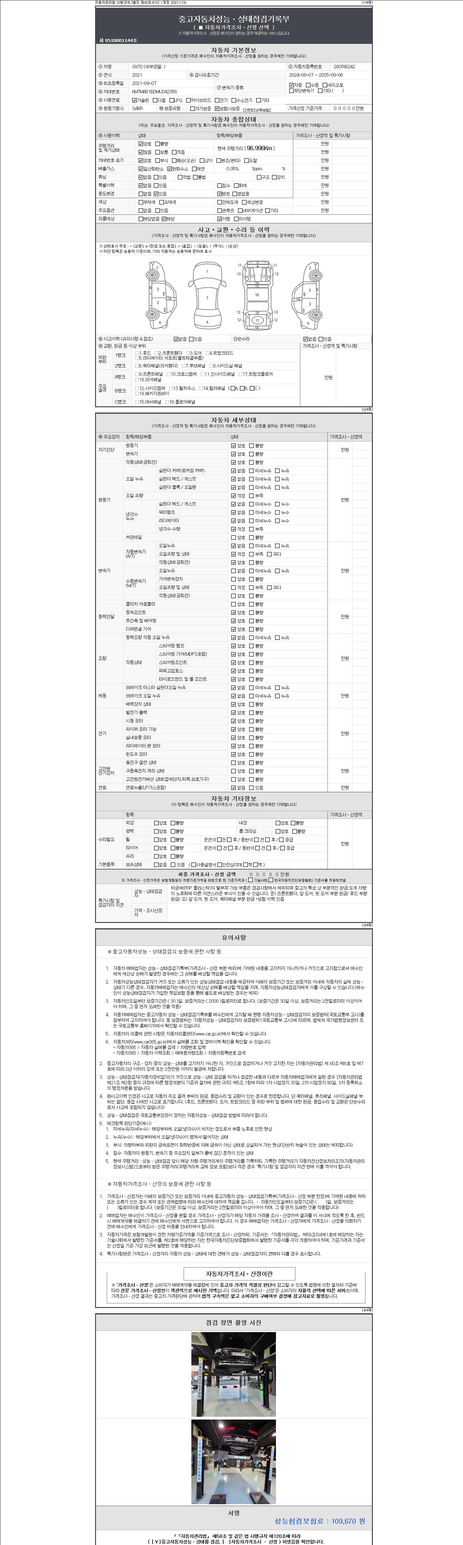 -중고자동차 매매업자를 통해 차량을 구입하실 경우 반드시 "중고자동차 성능, 상태점검 기록부"를 교뷰 받으셔야 하며, 매매업자는 반드시 의무 교부 하여야 압니다.