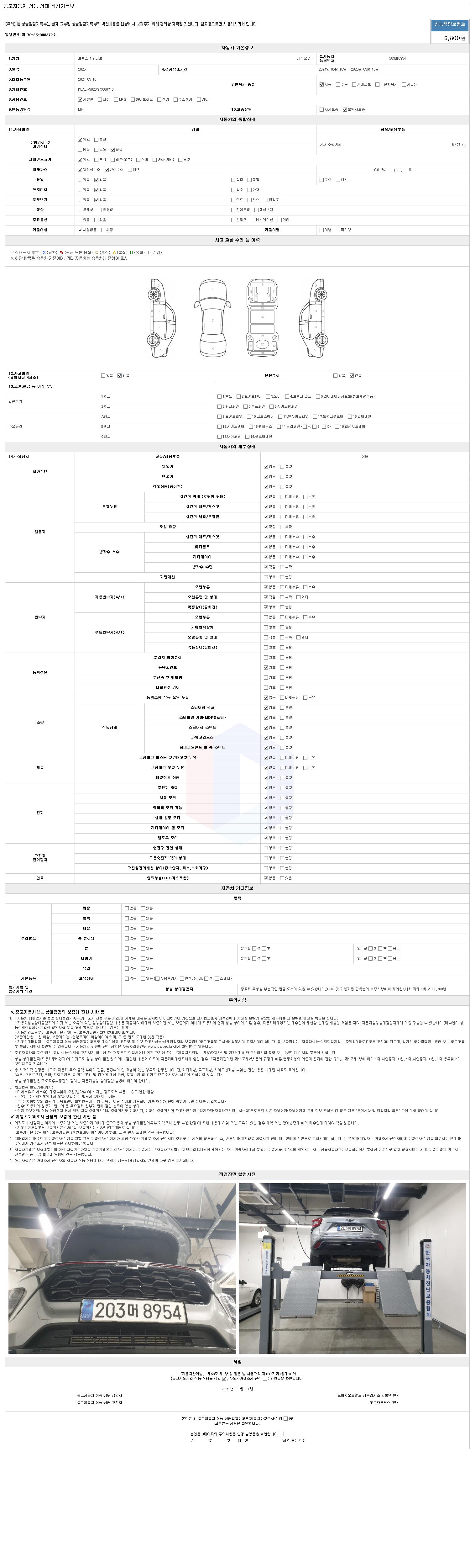 | 주행거리 | 16,476 km | 차량번호 | 203머8954 | 사고유무 | 성능기록부 참조 | 제시번호 | 제 2147483647 호 |